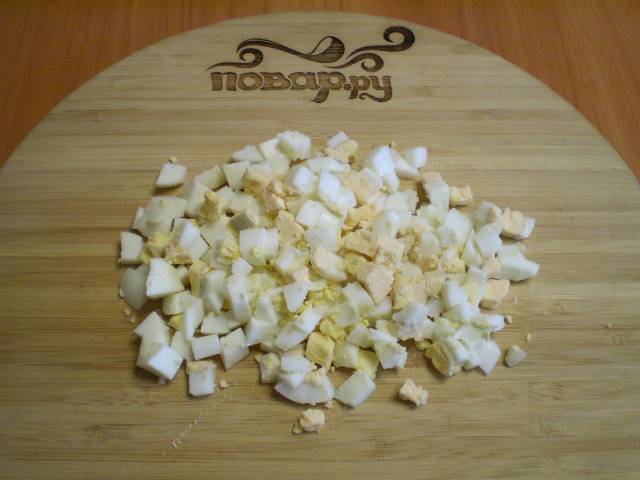 Мелко порубите вареные яйца.