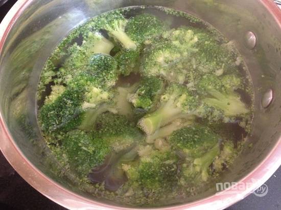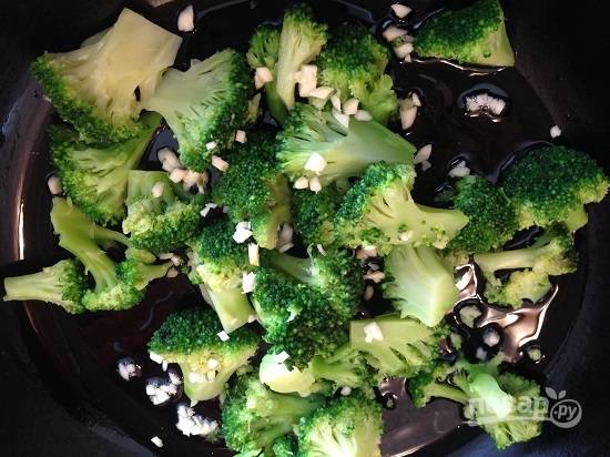 4. Отваренную брокколи и измельченный чеснок обжарим минут 5 на растительном масле.