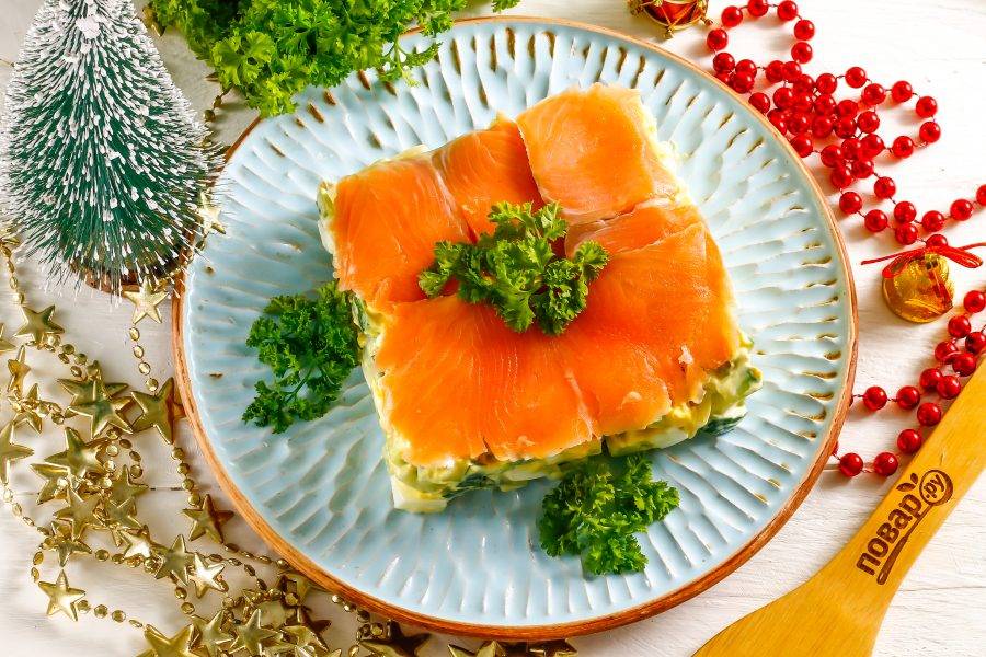 Сочный и быстрый салат с лососем на праздничном столе понравится тем, кто не любит "тяжелые" блюда. Он готовится буквально из минимума продуктов, но по вкусу не уступает красочным блюдам из ресторана.