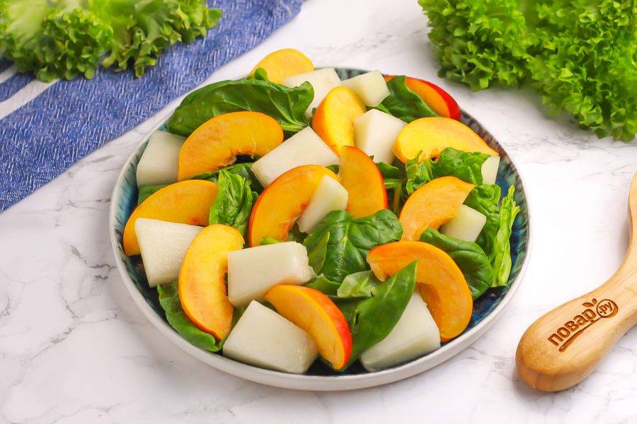 Подайте вкусный салат с нектаринами и дыней к столу сразу же после его приготовления. Приятного вам аппетита!
