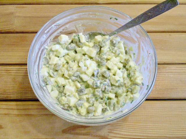 - Горошек консервированный 4-5 ст. ложек