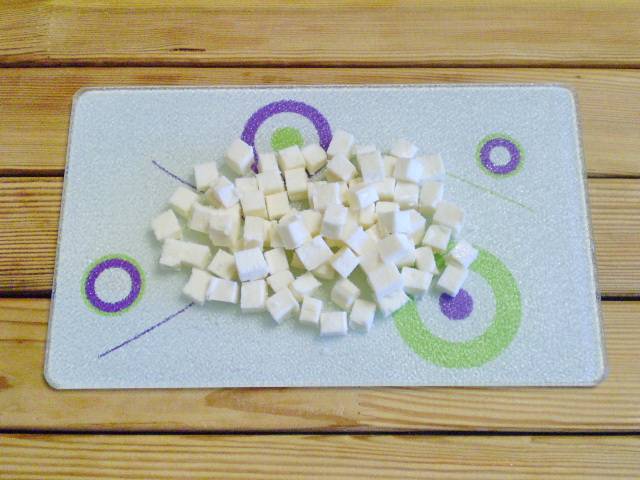 3. Сыр также кубиками нарезаем.