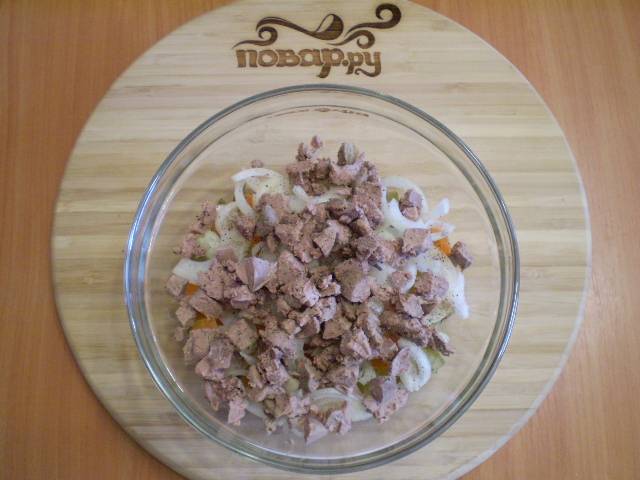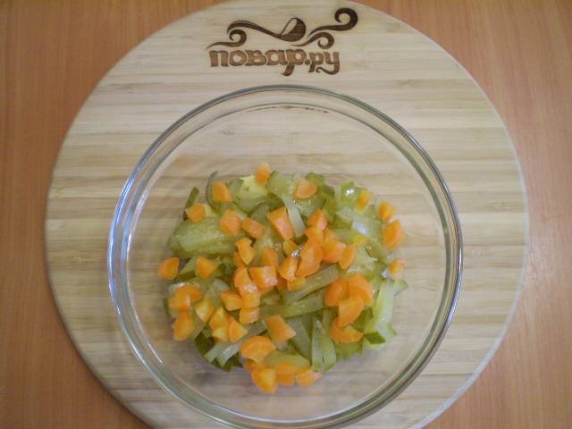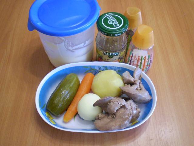 1. Для салата заранее отварите морковь, картофель и печень до готовности. Остудите.