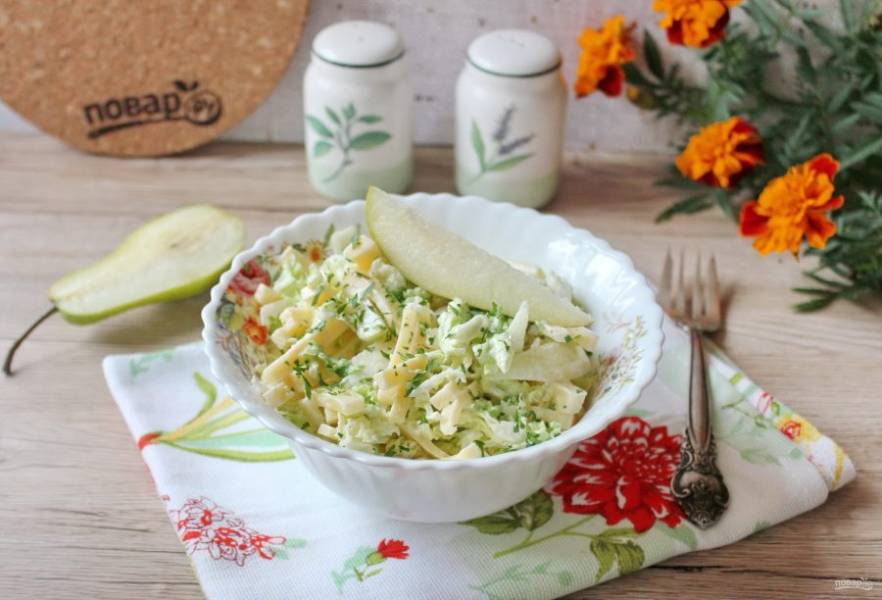 Салат с пекинской капустой и грушей — оригинальное и вкусное решение сочетания овощей и фруктов в салате. Нежное, сочное, с грушевым ароматом и сладковатыми нотками блюдо понравится всем.