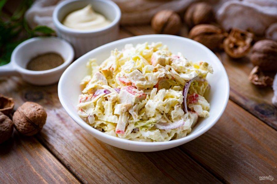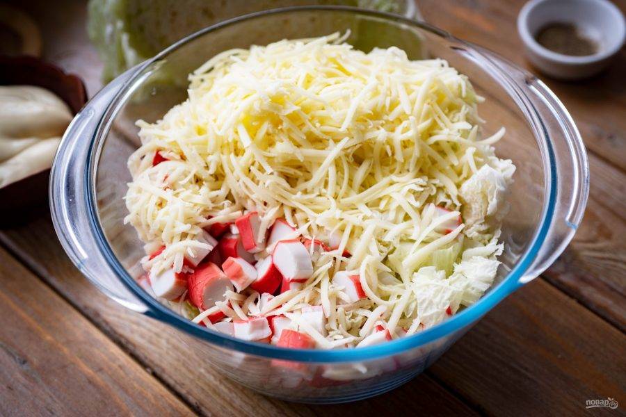 Салат с пекинской капустой, крабовыми палочками и сыром