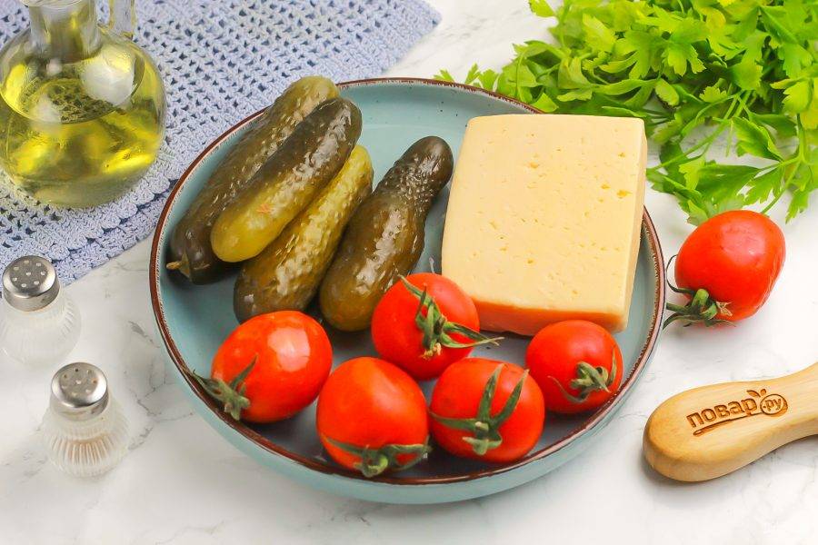 Подготовьте указанные продукты. Сыр можно использовать твердого сорта или рассольный — по вашему вкусу.