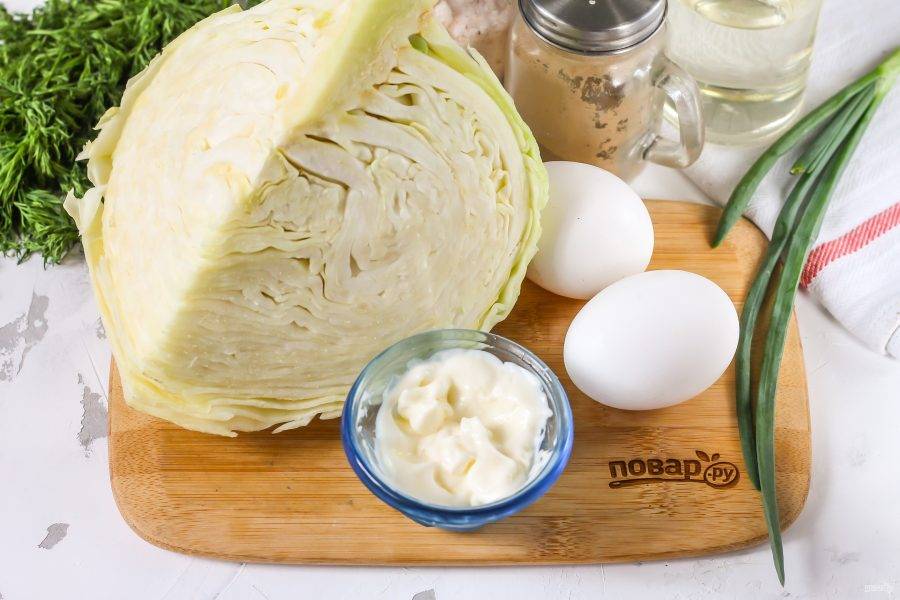 Замечательное блюдо для ужина или для перекуса, которое быстро и просто готовится — салат с яичными блинчиками и капустой. Заправлять его можно как майонезом любой жирности, так и сметаной.