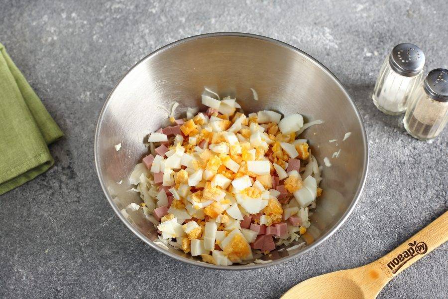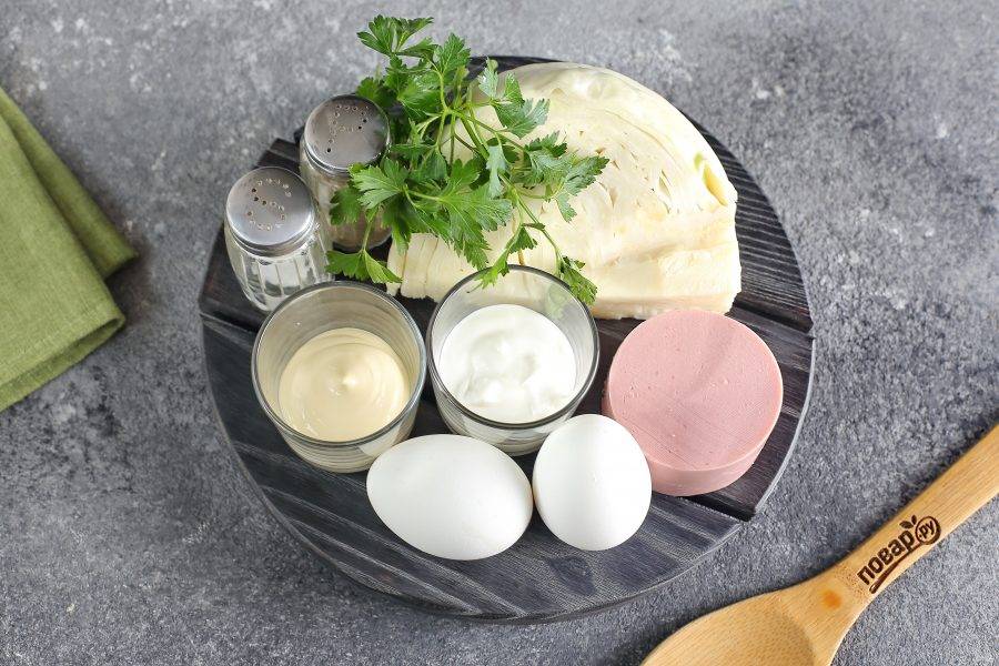 Видео рецепт "Салат с яйцом, капустой и колбасой"
