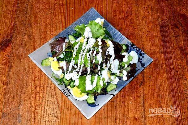 Салат с яйцом, огурцом, зеленым луком и сметаной