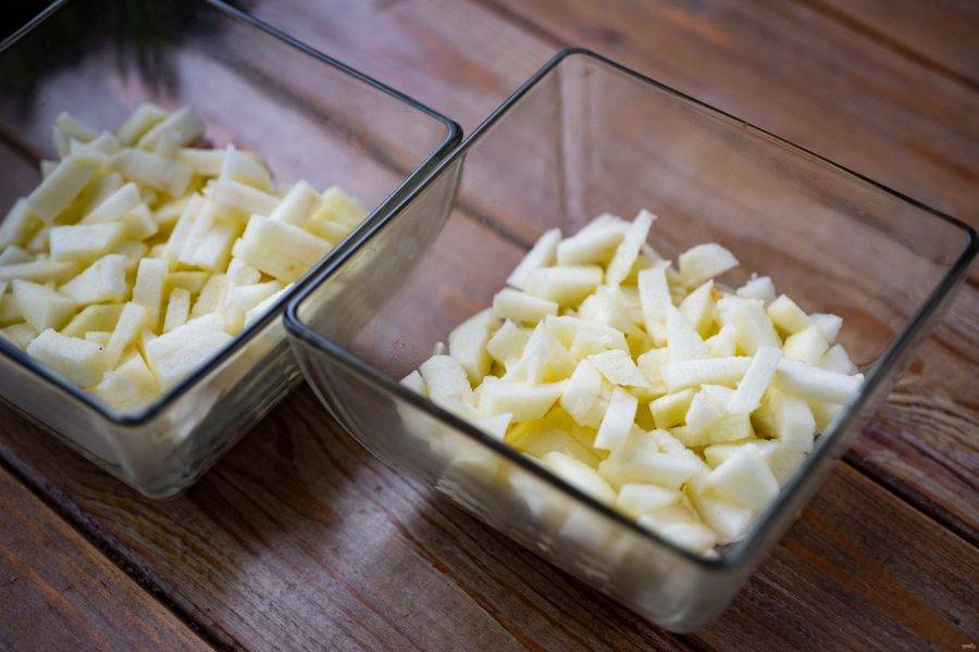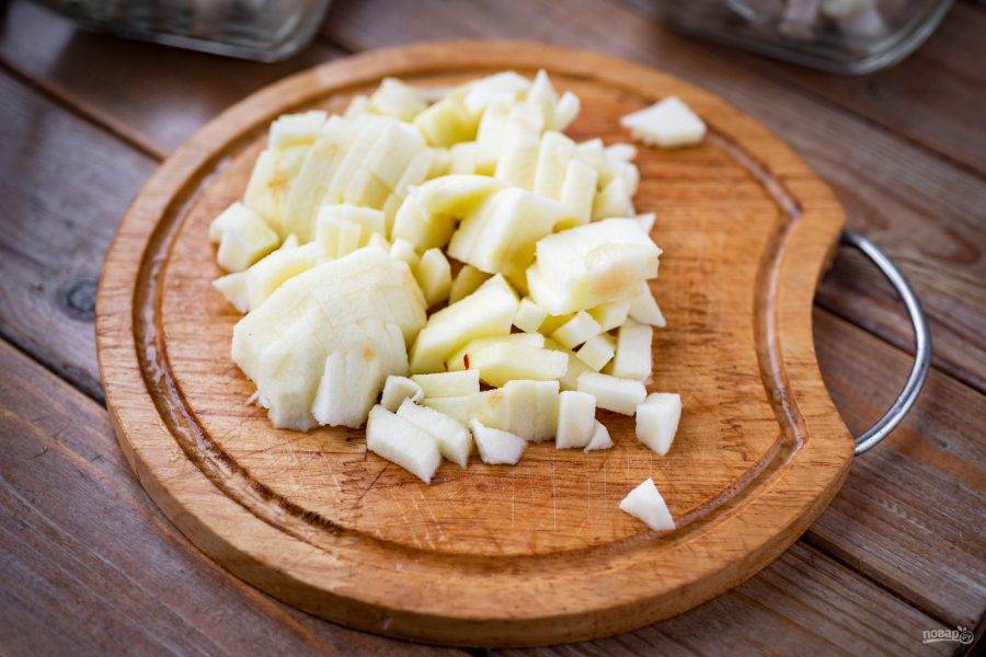 С яблока снимите кожицу, удалите семена, мякоть нарежьте небольшими кубиками.