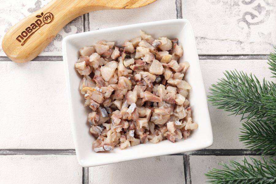 Филе сельди нарежьте мелкими кубиками.