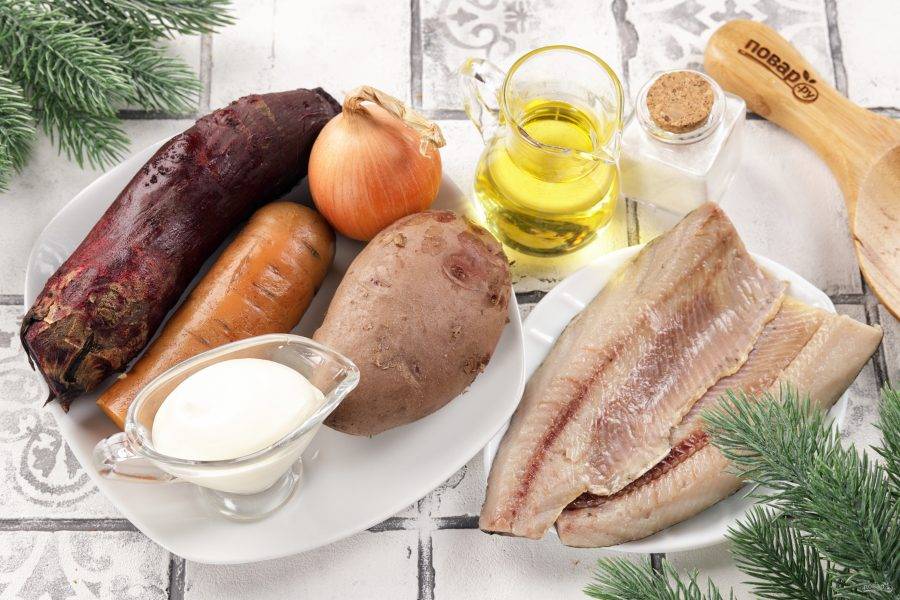 Картофель, морковь и свеклу отварите, дайте остыть. Филе сельди я подготавливаю самостоятельно, но можете взять уже готовое филе в масле.