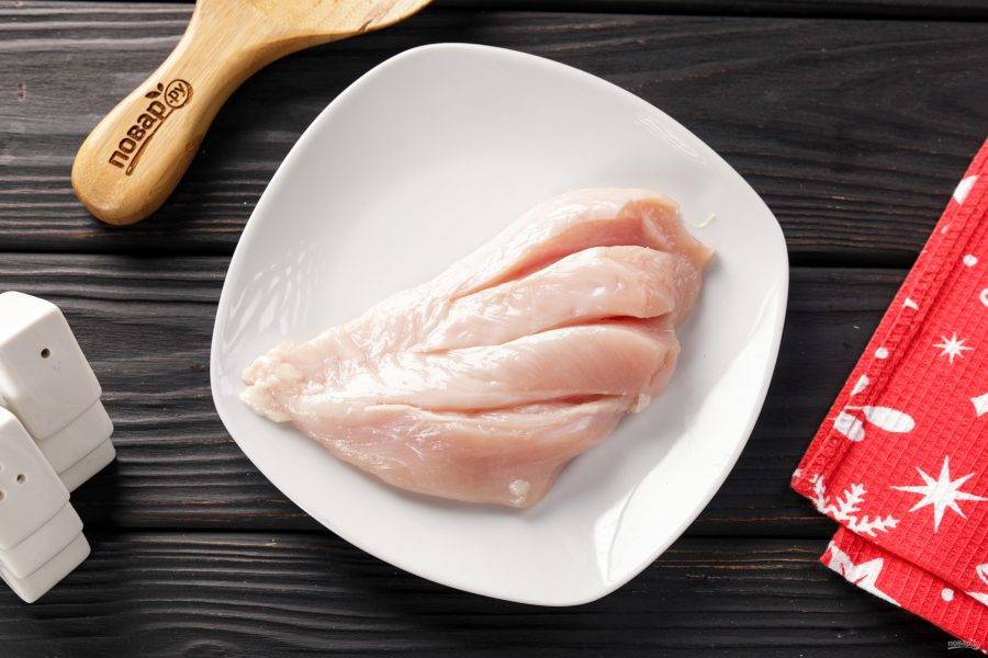 Куриное филе промойте и обсушите. Сделайте несколько глубоких надрезов ножом.