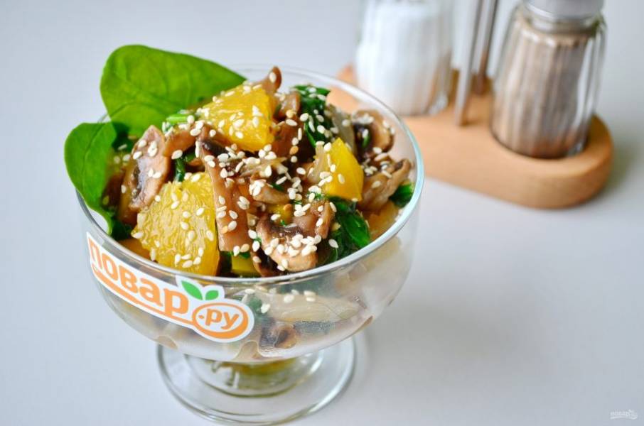 Салат со шпинатом, грибами и апельсинами