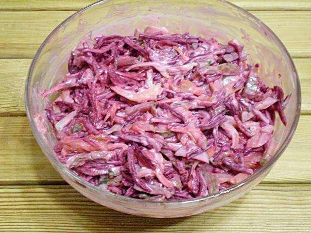 8. Салат готов. Поставьте на 15 минут в холод. И можно подавать к столу.