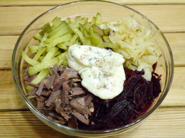 Салат свекольный с сердечками и желудками
