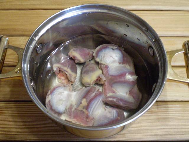 1. Перед началом приготовления салата нужно отварить субпродукты с соленой воде до готовности. Время варки 1 час. Остудить.