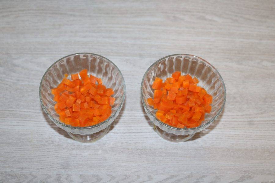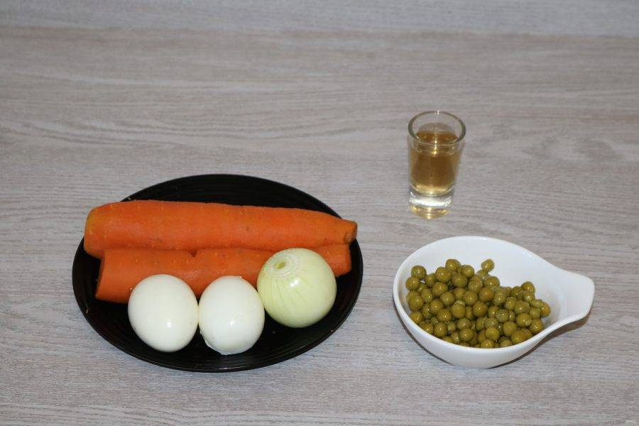 Подготовьте ингредиенты. Морковь и яйца отварите до готовности, почистите.