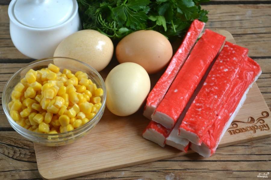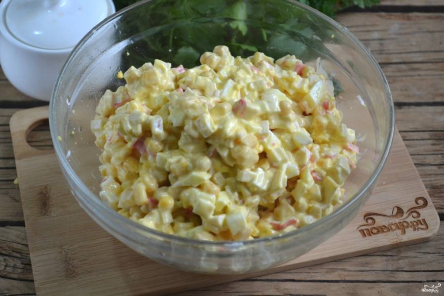 Крабовый салат с яблоками и кукурузой