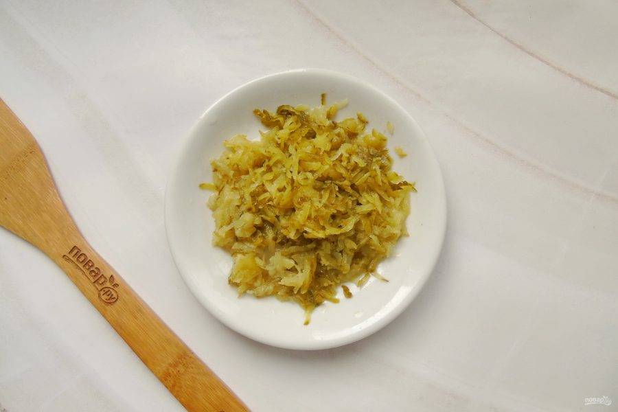 Маринованные огурцы натрите на терке и хорошо отожмите от рассола.