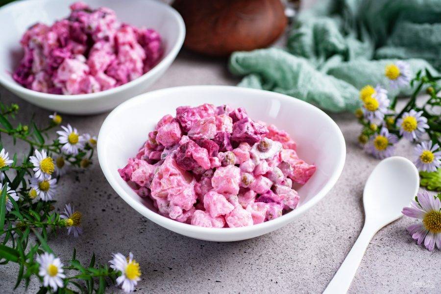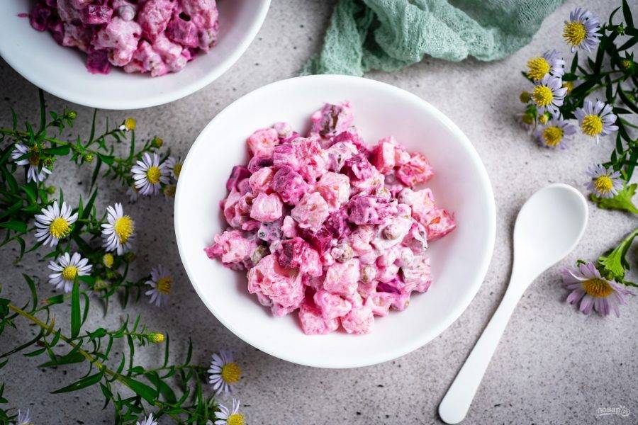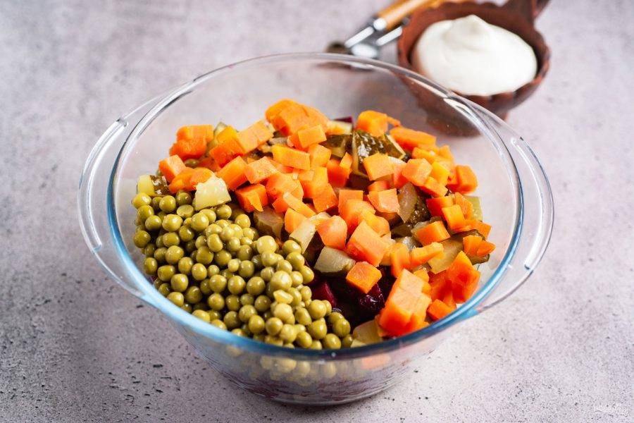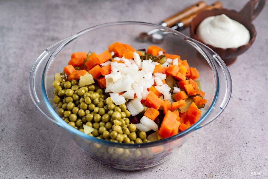 Приготовьте винегрет с майонезом — такой салатик отлично будет смотреться как на праздничном столе, так и на обеденном для всей семьи. Готовится быстро и просто, получается очень сытно и вкусно!
