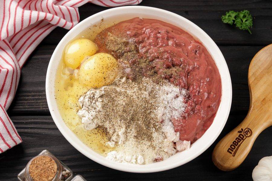 Добавьте яйца, манку, муку, давленный чеснок, соль и специи по вкусу. Я использовала лишь молотый перец, но можно добавить любые ароматные приправы на свой вкус.