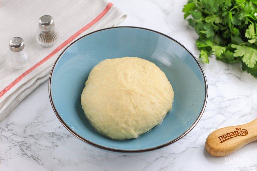Понемногу подсыпайте муку, пока тесто не станет плотным, бархатным и пластичным. Немного муки у вас должно остаться и на раскатку. Накройте тесто пакетом или пищевой пленкой и дайте ему отдохнуть 15-20 минут.