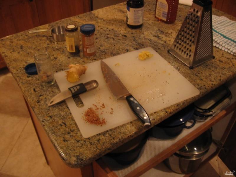 Поставьте вино в кастрюле вариться на среднем огне. Тем временем подготовьте имбирь и мускатный орех: натрите орех на терке, имбирь мелко порубите или тоже натрите. Можно взять и имбирь в порошке.