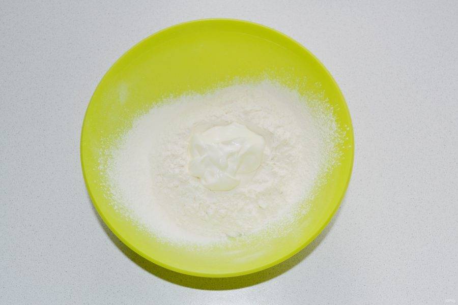 В глубокую мисочку просейте муку с солью.