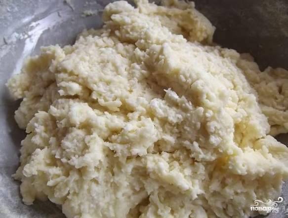 Всыпаем муку и быстро замешиваем тесто. Количество муки зависит от влажности творога , поэтому подсыпайте муку небольшими порциями и следите за консистенцией теста.Оно не должно липнуть к рукам.