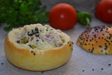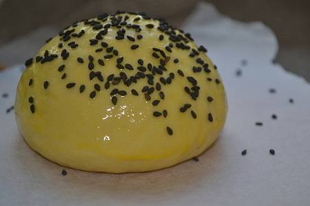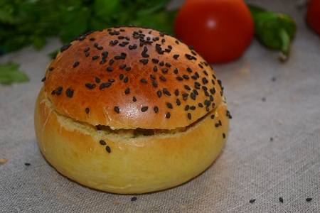 С готового теста формируем булочки. Даем немножко времени, чтобы подошли. Смазываем взбитым яйцом и посыпаем кунжутом. Отправляем в духовку. Выпекаем до красивой, аппетитной корочки.