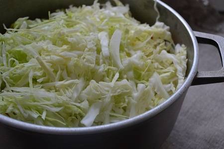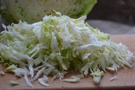Пока кабачки пустят сок и уменьшаться в объеме - нашинкуем капусту.