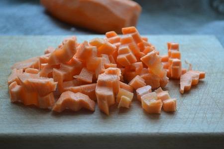 Кубиком нарезаем морковь.