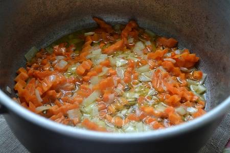 В разогретом растительном масле обжариваем немножко овощи.