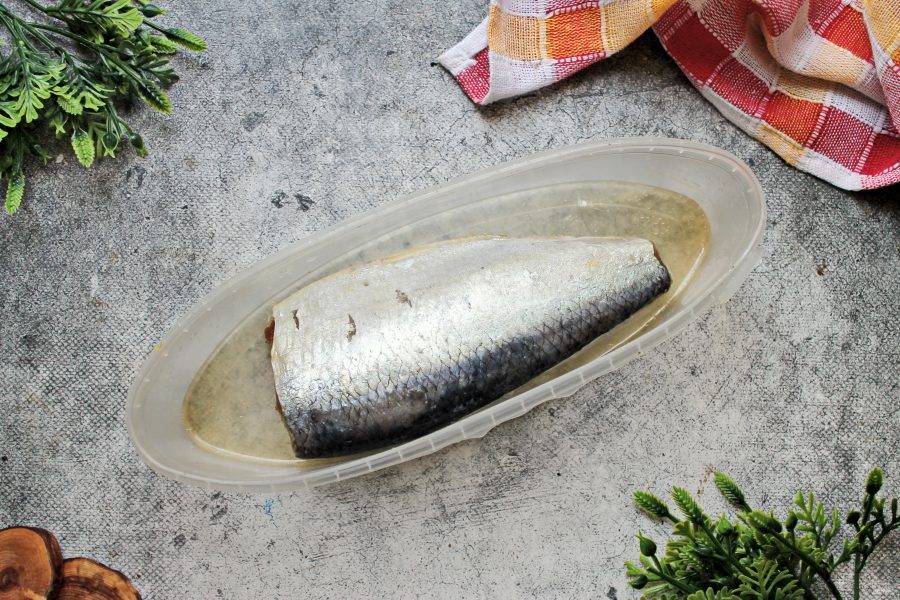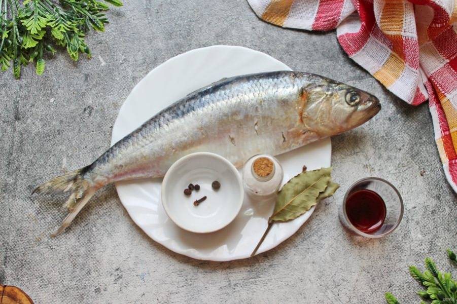 Подготовьте все необходимые ингредиенты для приготовления сельди специального посола.