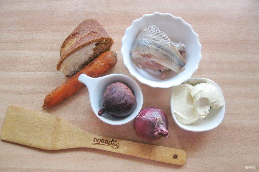 Подготовьте ингредиенты для приготовления селедки под шубой в стиле "Модерн".