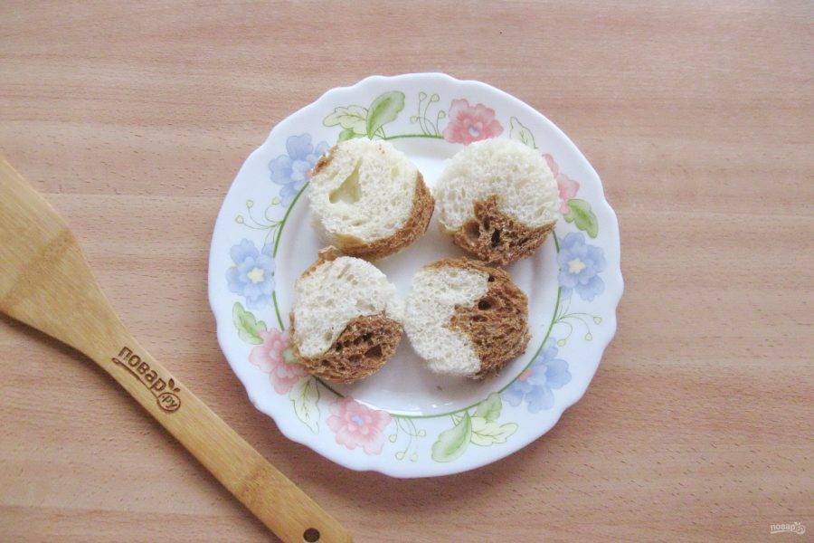 Черный или белый хлеб нарежьте ломтиками. Из каждого ломтика вырежьте кружок.