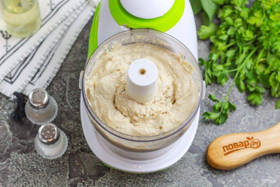 Измельчите все содержимое емкости в пюреобразную массу в течение 3-4 минут на пульсирующем режиме.