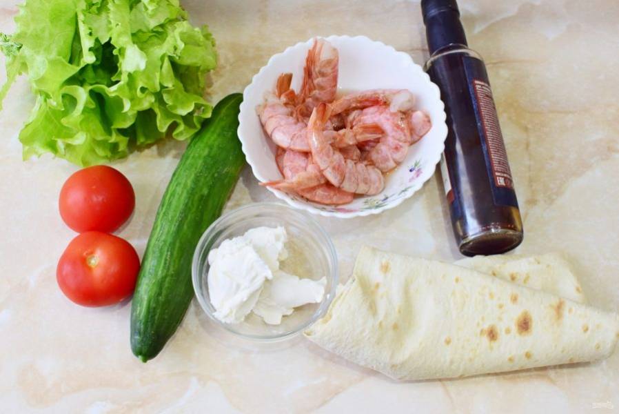 Перед началом приготовления подготовьте необходимые ингредиенты. Креветки выбирайте крупные, чтобы вкус был более насыщенный.