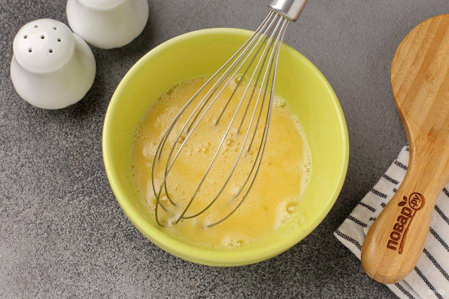 Яйца взбейте с солью и молотым перцем по вкусу.