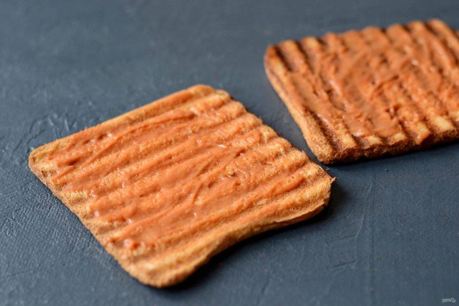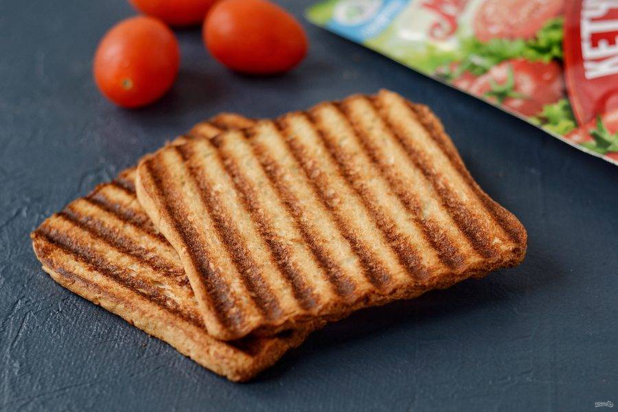 Хлеб для тостов подсушите на сухой сковороде, в тостере или гриле.