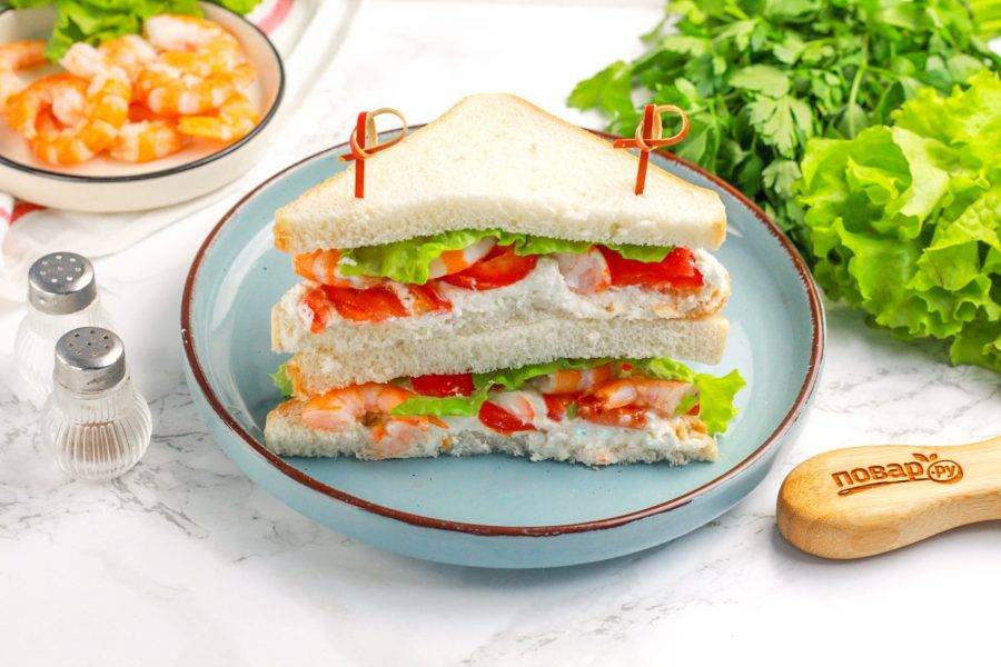 Аппетитный сэндвич с креветками — не только вкусное, но и полезное блюдо, которое можно подать к завтраку, полднику, взять с собой в поход, поездку, на работу. Дополняйте его различными соусами!