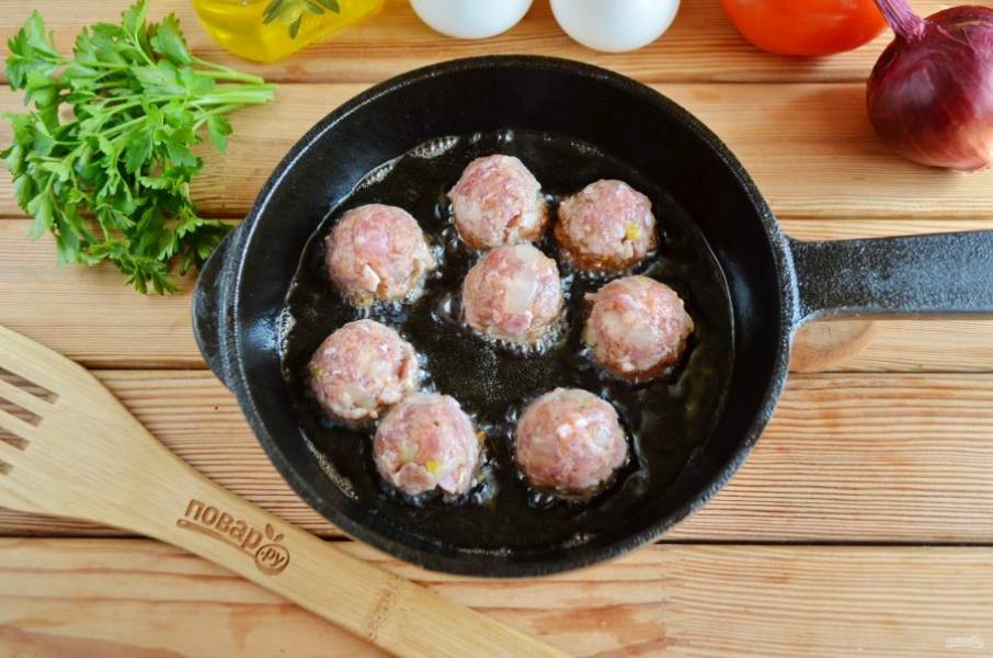 Разогрейте растительное масло, обжарьте мясные шарики со всех сторон до готовности, примерно 10 минут.