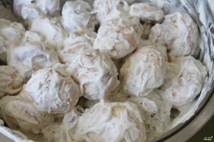 Грибы хорошенько промойте, кожуру можете не счищать. Сначала их следует посыпать специями, посолить и поперчить. Потом добавьте сметану, хорошенько перемешайте и оставьте мариноваться в холодильнике часа на 2-3.