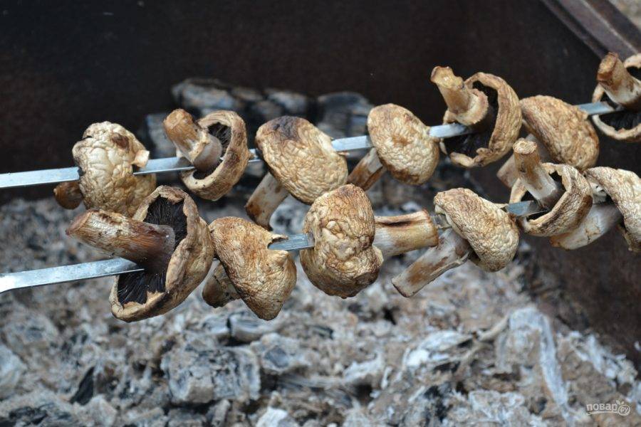 Приготовить шашлык из шампиньонов на мангале не только просто, это еще и очень вкусно. Подавать можно как самостоятельную закуску с соусами или овощами, а можно как дополнение к мясу.