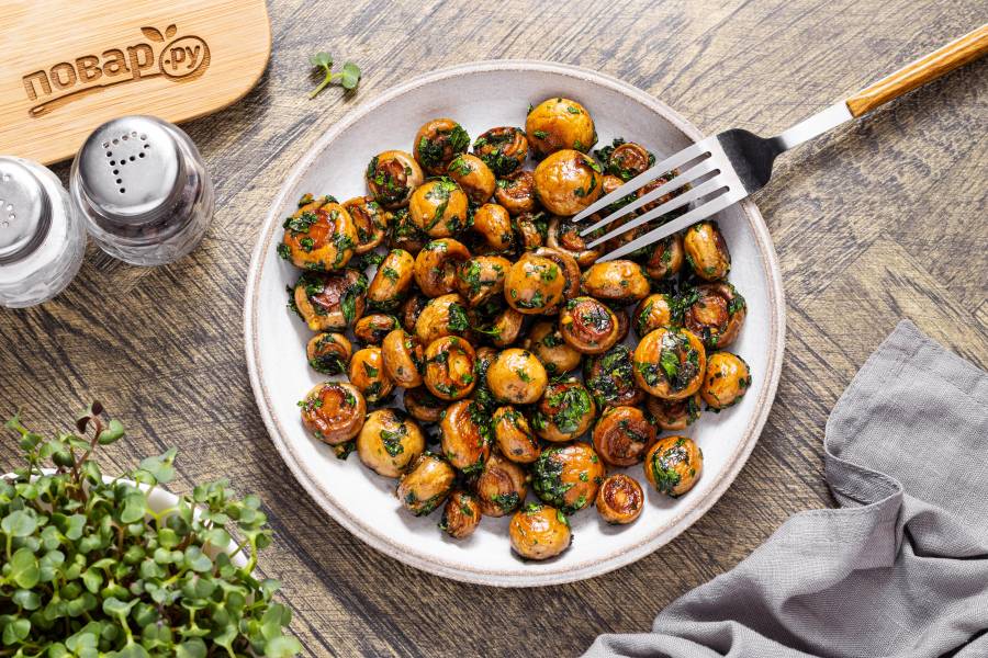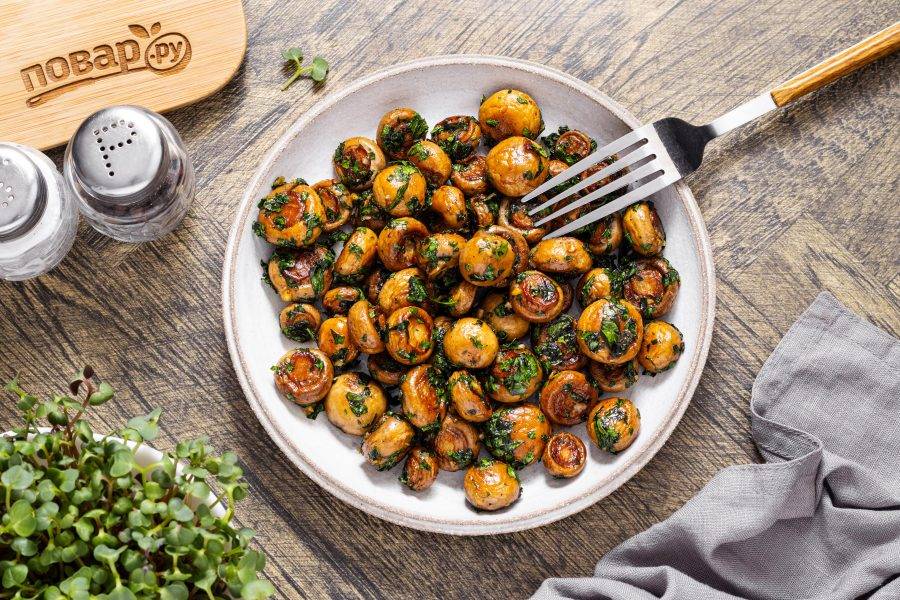 Хочу поделиться рецептом закуски из шампиньонов, которую можно приготовить быстро и просто. Шампиньоны жарятся до румяного цвета, а для аромата добавляется чеснок и свежая петрушка.