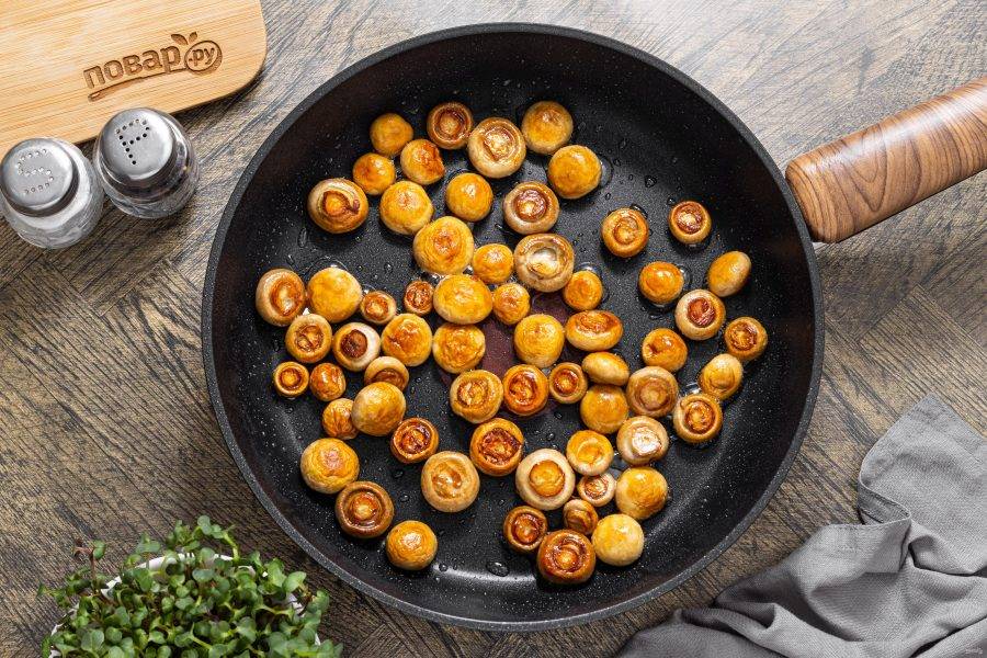 Разогрейте сковороду на среднем огне. Выложите шампиньоны.