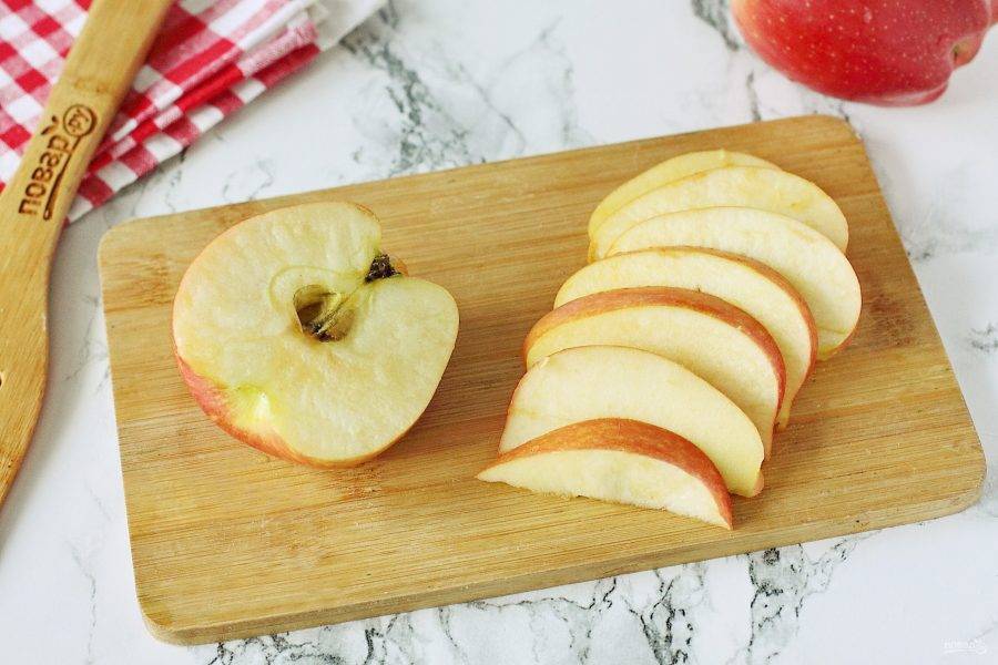 Яблоки помойте, удалите сердцевину и нарежьте дольками.