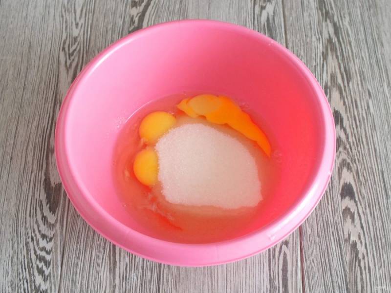 В чаше соедините яйца и сахар.