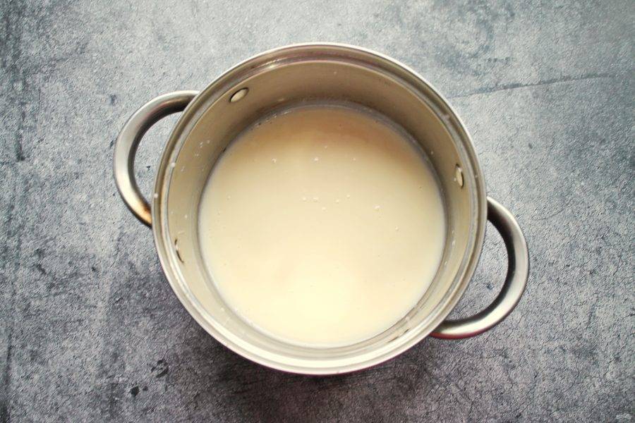 Яйца разделите на белки и желтки, белки не понадобятся. Молоко доведите до кипения. Желтки взбейте с сахаром до светлой массы и, взбивая, вливайте горячее молоко. Перелейте массу в кастрюлю, поставьте на водяную баню и варите до загущения. Снимите кастрюлю с огня.